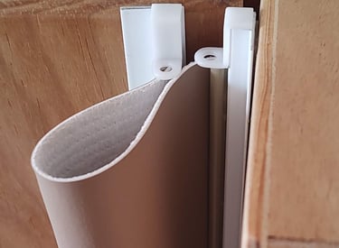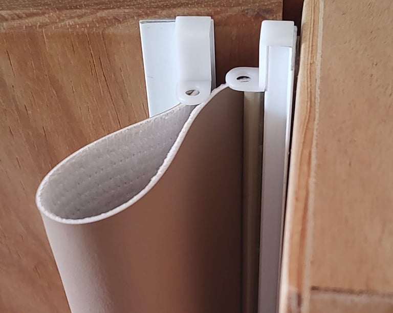 A fixação é feita por meio de perfil de alumínio (200 cm cada) e presilhas plásticas de acabamento. A aplicação é simples e segura, utilizando fita dupla face de alta aderência já instalada nos perfis, proporcionando fácil instalação em portas e batentes, sem a necessidade de perfurações.